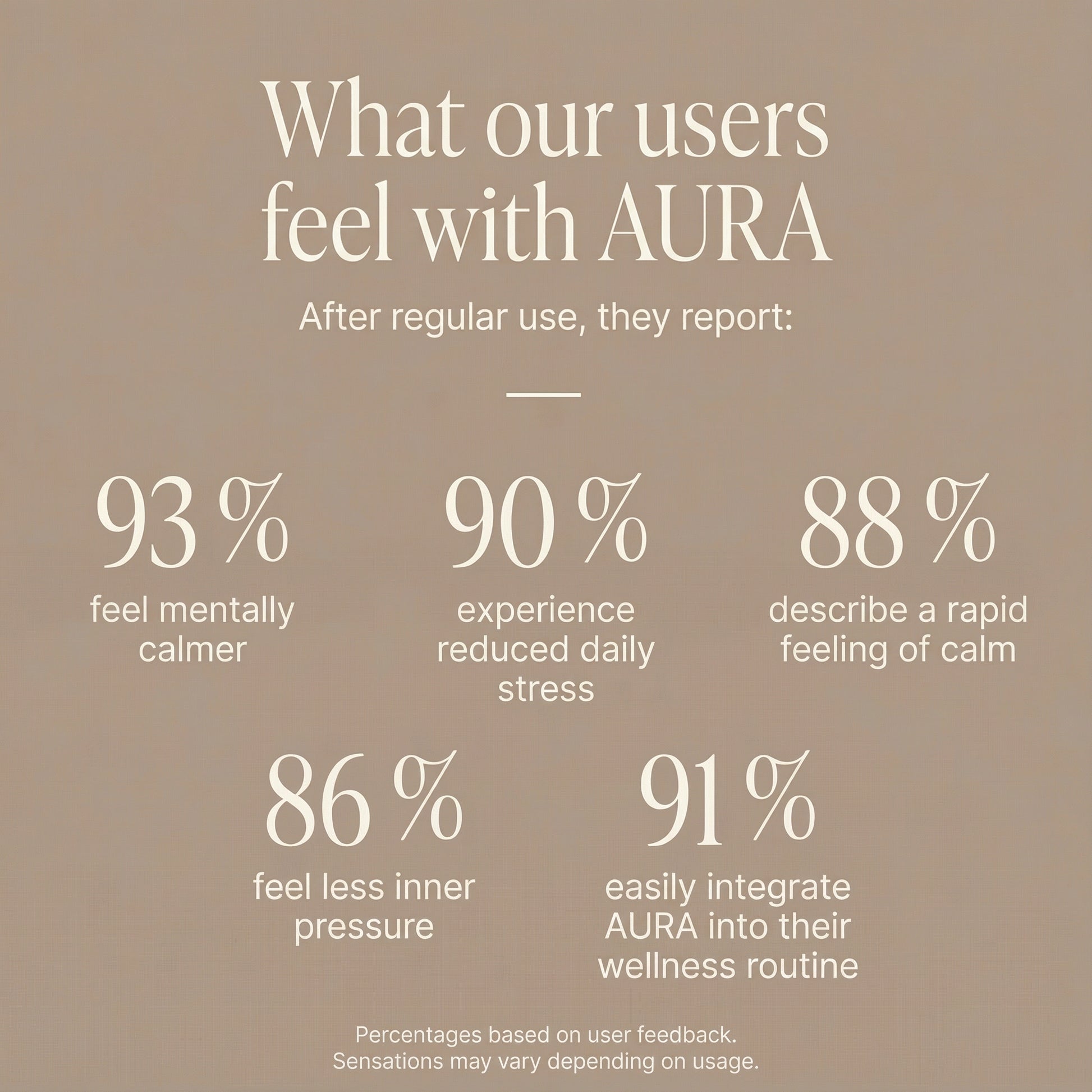 When used as recommended, AURA is suitable for both adults and children aged 4 and over, supporting moments of relaxation, recentering, and a return to calm — with complete peace of mind.