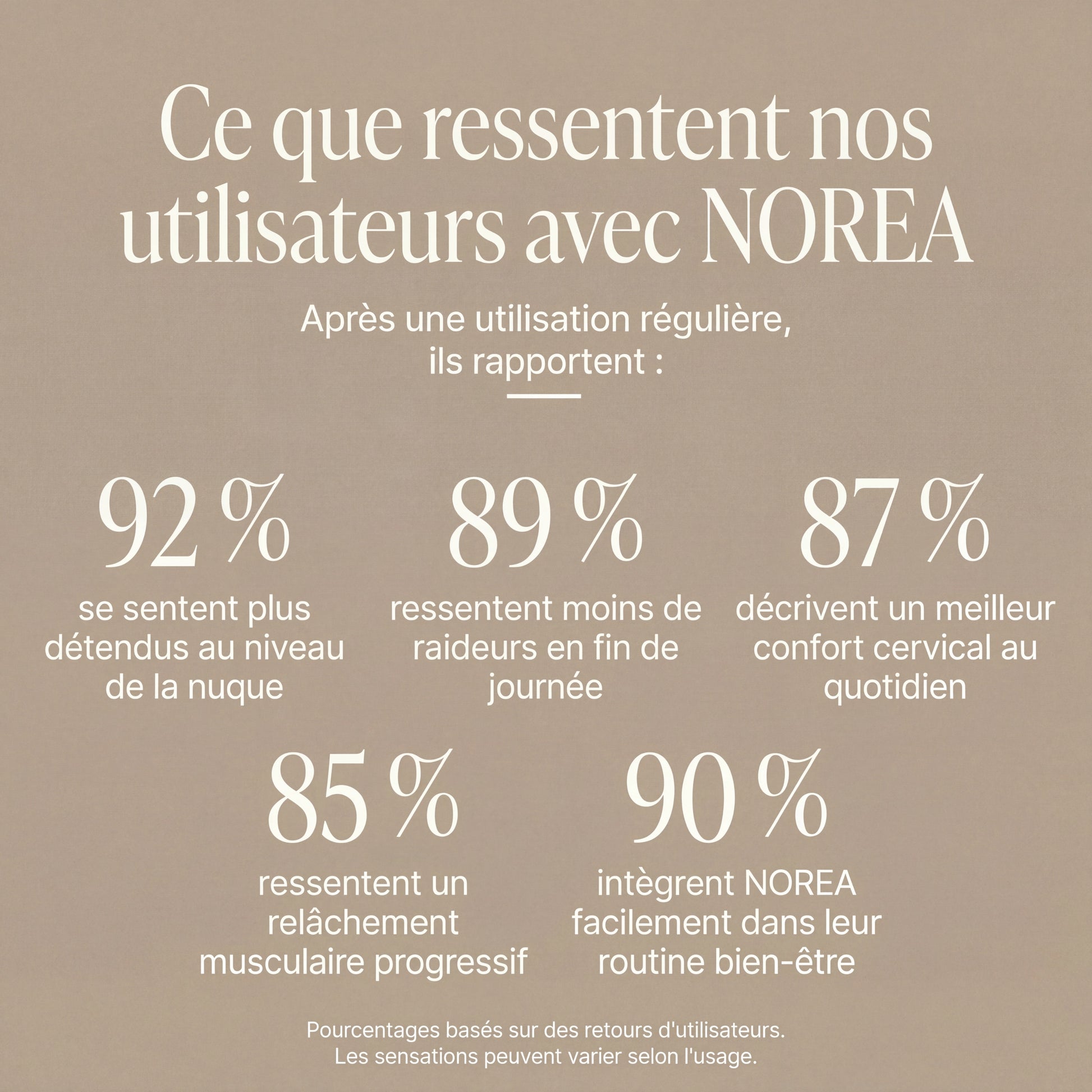 While NOREA cannot fully replace human touch or the complete experience of a professional massage, it offers targeted neck and shoulder relief comparable to a spa-quality treatment — at a fraction of the cost.